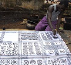 Africa - a large continent with many different people and cultures - has lots of textiles to choose from. The ones that appeal to me the most and which I have done the most research for are: Kuba cloth from the Kuba or Bushongo people from central Africa now in the Democratic Republic of Congo, bark cloth by the M'Buti pygmy people from the Ituri Forest in the northeastern corner of the same country and Adinkra cloth from the Ashanti people in Ghana. Each of these employ a different visual language as they are all very different people.